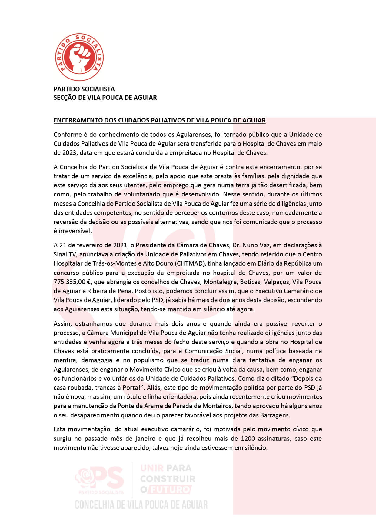 Encerramento da Unidade dos Cuidados Paliativos de Vila Pouca de AguiarBy Administrador / Notícias / Leave a Comment Artigo publicado – 14/02/2023 Partilha! Facebook Twitter LinkedIn Email