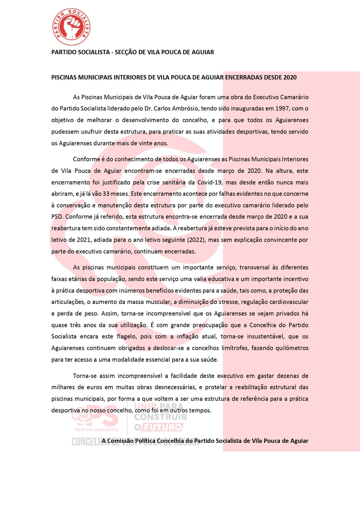 Piscinas Municipais Interiores de Vila Pouca de Aguiar encerradas desde 2020By Administrador / Notícias / Leave a Comment Artigo publicado – 24/01/2023 Partilha! Facebook Twitter LinkedIn Email