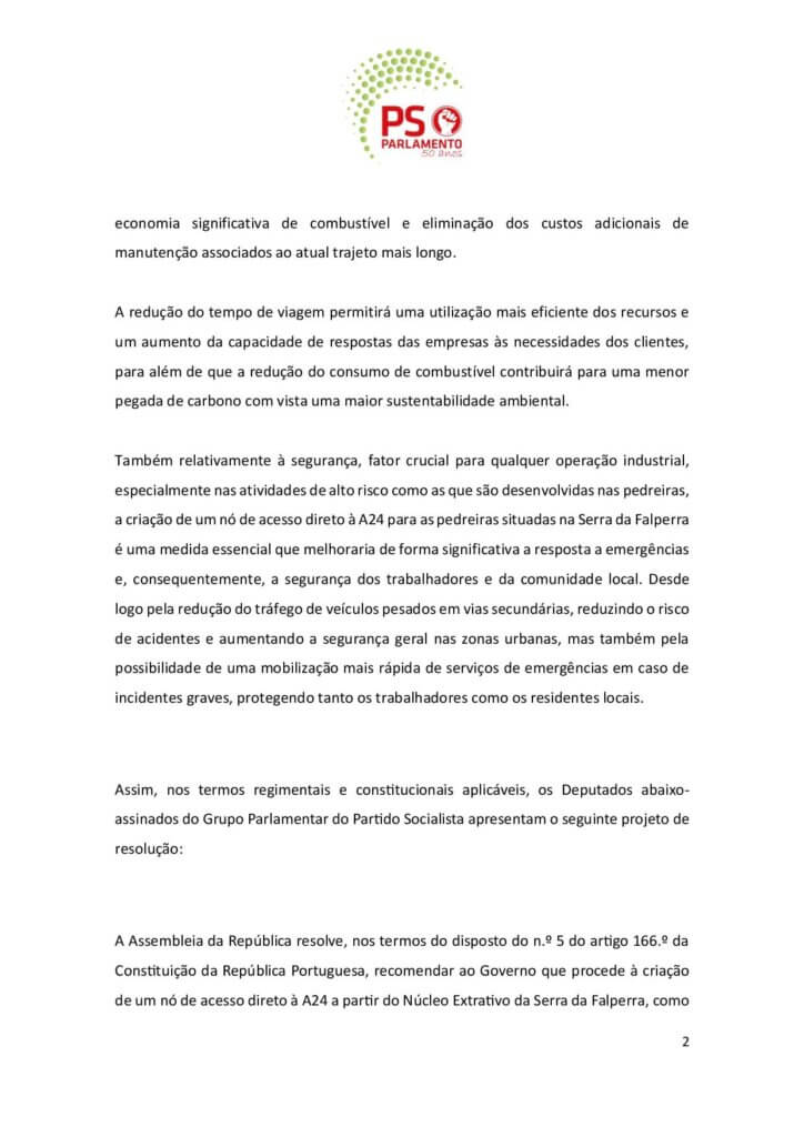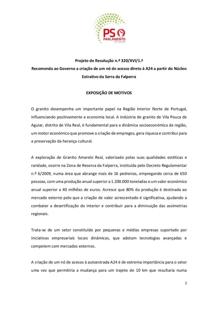 Projeto de Resolução - Criação de um nó de acesso direto à A24 a partir do Núcleo Extrativo da Serra da Falperra
